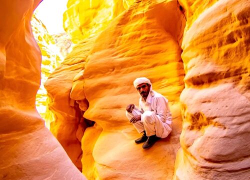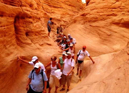 Zostaniesz odebrany z hotelu w Sharm El Sheikh 4×4 jeepem i udasz się w kierunku miasta Nuweiba. Po drodze przewidziany jest przystanek na zdjęcia w miejscu z panoramicznym widokiem na port, gdzie można zrobić zdjęcia. Uczestnicy będą również mogli podziwiać góry Arabii Saudyjskiej po drugiej stronie Zatoki Akaba. Następnie dotrzesz do kanionu i rozpoczniesz zejście w dół kanionu, aby zobaczyć naturalnie kolorowe skały. Później wrócisz na główną drogę i odwiedzisz oazę. Podczas wycieczki zapewniony będzie lunch. Na koniec wrócisz do Sharm El Sheikh.