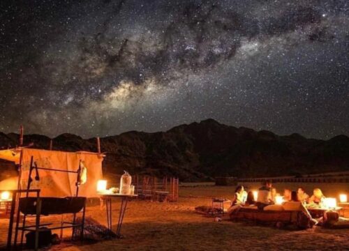 Zostaniesz odebrany z hotelu w Sharm El Sheikh i przewieziony do wioski beduińskiej na wycieczkę z kolacją beduińską, aby zobaczyć ich codzienne życie i tradycje. Następnie będziesz miał okazję przejechać się na wielbłądzie i podziwiać niesamowity zachód słońca z panoramicznego widoku. Później skosztujesz kolacji z grilla z wliczoną wodą mineralną i napojami bezalkoholowymi. Na zakończenie doświadczysz pokazu orientalnego i folklorystycznych pieśni, po czym zostaniesz przewieziony z powrotem do hotelu w Sharm pod rozgwieżdżonym niebem.